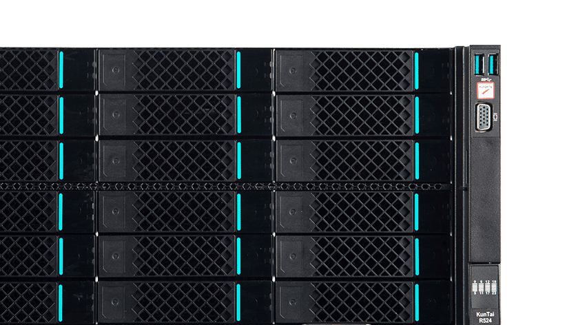 KunTai R524 存储型服务器是DB旗舰数码基于鲲鹏处理器推出的新一代 ARM数据中心服务器。主要面向存储业务,具有海量存储、高性能、低功耗以及易扩展的特点,适合为大数据分析、软件定义存 储等应用场景的工作负载进行髙效加速。